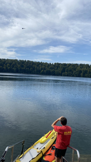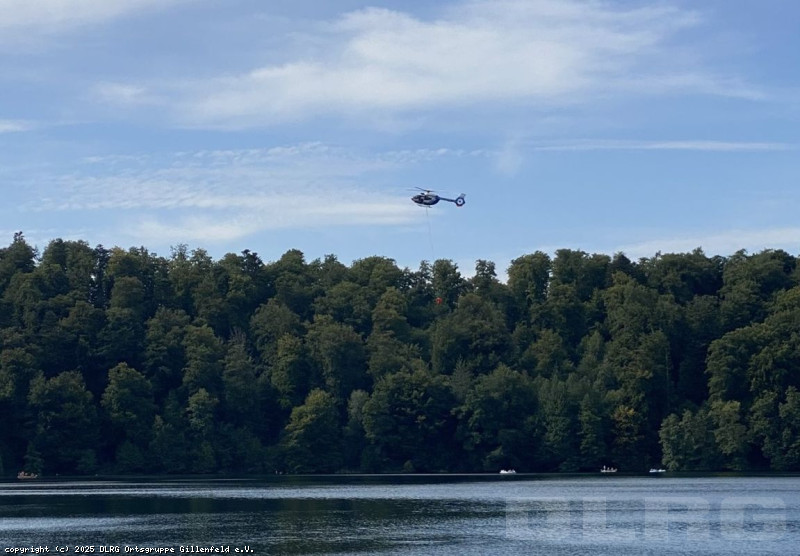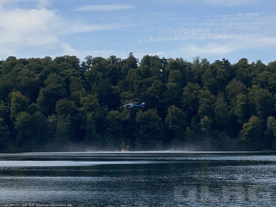 Am Samstag, den 20. September 2025, fand eine groß angelegte Feuerwehrübung der Feuerwehreinheiten der Verbandsgemeinde Ulmen statt. Ein besonderes Highlight war die Löschwasserentnahme aus dem Pulvermaar und dem Ulmener Maar – unterstützt durch einen Polizei-Helikopter. Die DLRG Ortsgruppe Gillenfeld war gemeinsam mit der Feuerwehr Gillenfeld am Pulvermaar im Einsatz und übernahm die Absicherung der Übung. Glücklicherweise verlief die gesamte Maßnahme am Pulvermaar reibungslos und ohne besondere Vorkommnisse.